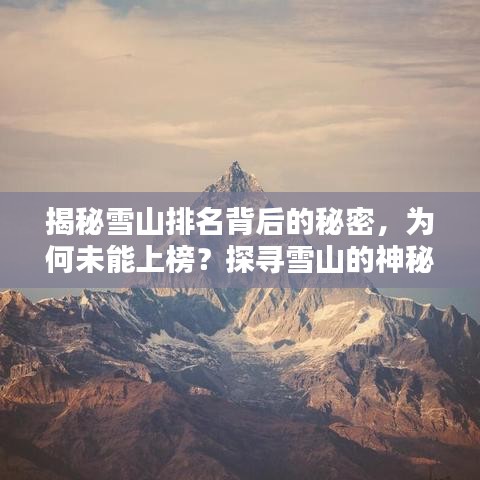 雪山,作为大自然赋予地球的壮丽景观,以其雄伟的气势和独特的魅力吸引着无数探险者和登山爱好者的目光,在世界雪山排名中,有一些雪山因其极高的难度和危险性被列入了不能进的名单,本文将探讨这些雪山不能进的原因以及它们所散发出的神秘魅力。