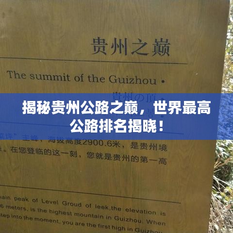 贵州,这片位于中国西南部的神秘土地,以其得天独厚的自然资源和壮丽的自然景观闻名于世,在这片美丽的土地上,公路的建设同样令人瞩目,我们将聚焦于贵州的公路,探讨其中的世界最高公路排名。